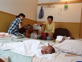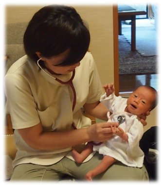 訪問では、助産師がお母さんと赤ちゃんの健康状態を確認したり、