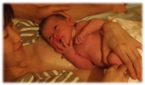 赤ちゃんは、生まれるとすぐにお母さんの胸に抱かれ、