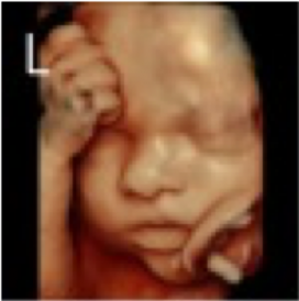 看護師・助産師が4Dエコーを使い赤ちゃんを観察します。